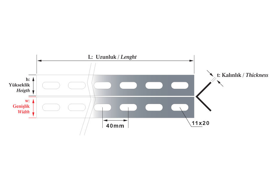 KalınlıkSipariş KoduL mmW-H mmAğırlık (kg/mt)